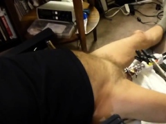 Stroking in tight jeans shorts